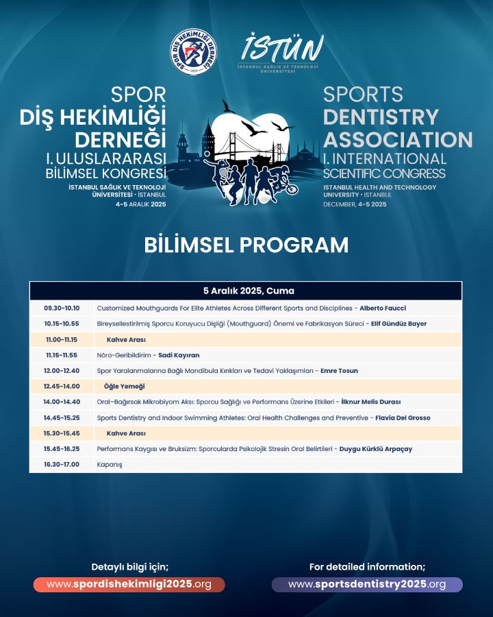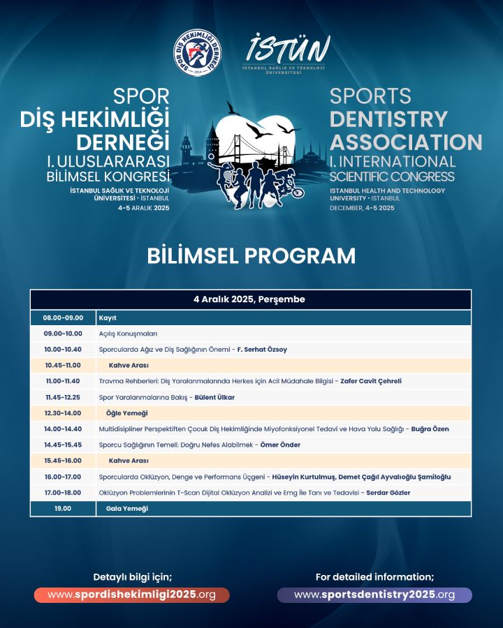 Spor Diş Hekimliği Derneği I. Uluslararası Bilimsel Kongresi kapsamında detaylı bilgi ve kayıt için tıklayınız.