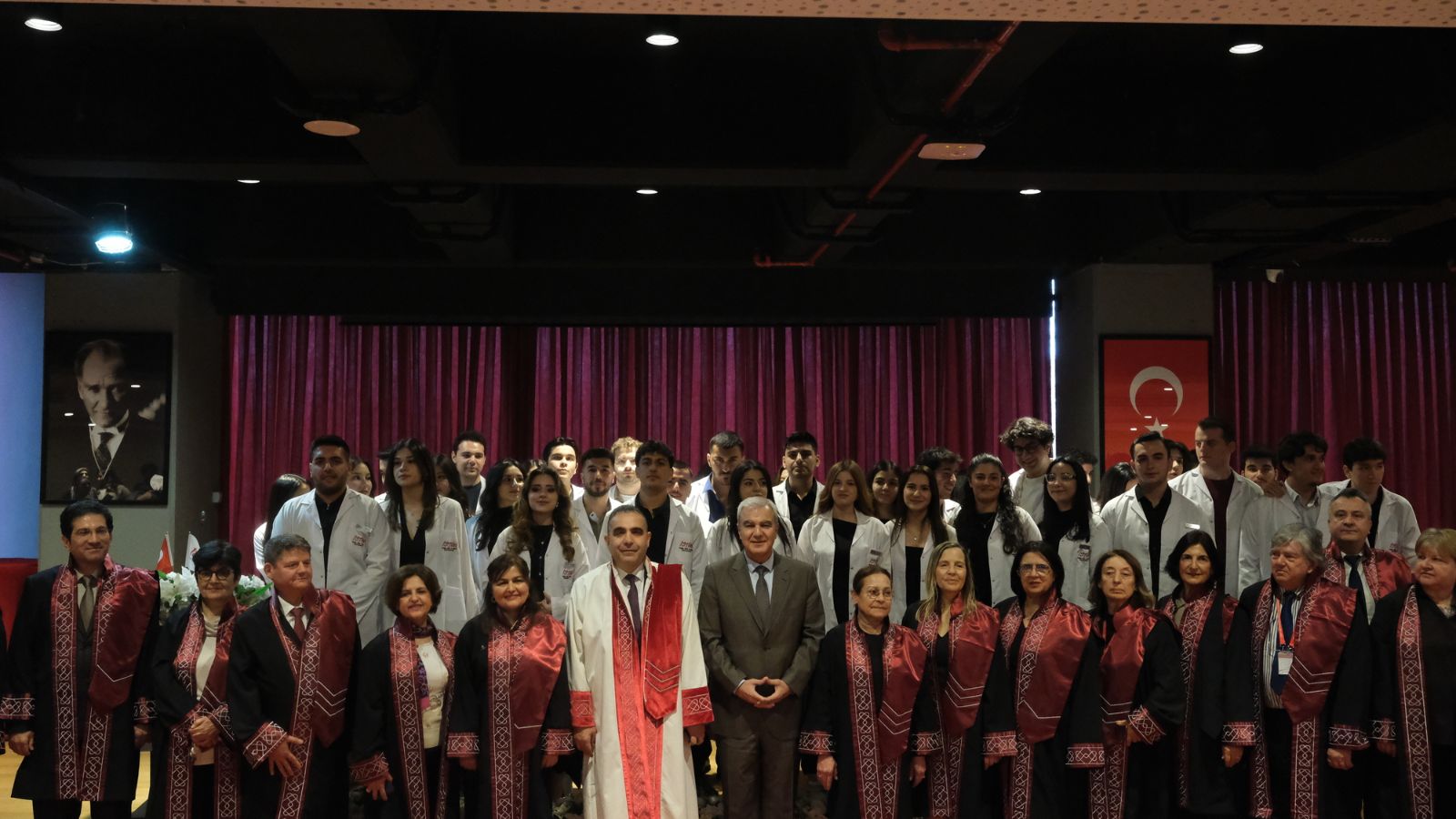 Rektör Yardımcısı Prof. Dr. Necati Örmeci ise tıp eğitiminin uzun soluklu ve özveri gerektiren bir süreç olduğunu belirterek öğrencilerin meslek hayatlarında bilimi, etik değerleri ve toplumsal sorumluluğu birlikte taşımalarının önemine dikkat çekti.