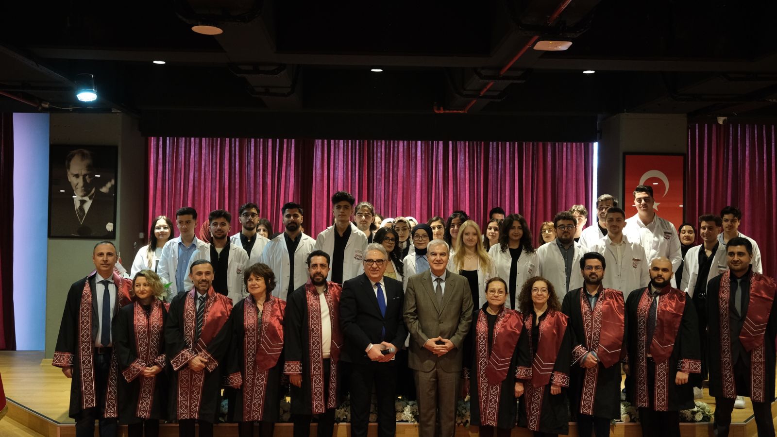 Programın devamında öğrenciler sahneye davet edilerek beyaz önlüklerini akademisyenler ve davetli konukların elinden giydi. Öğrencilerin ilk kez beyaz önlüklerini giymeleri hem kendileri hem de aileleri için gurur ve heyecan dolu anlara sahne oldu.